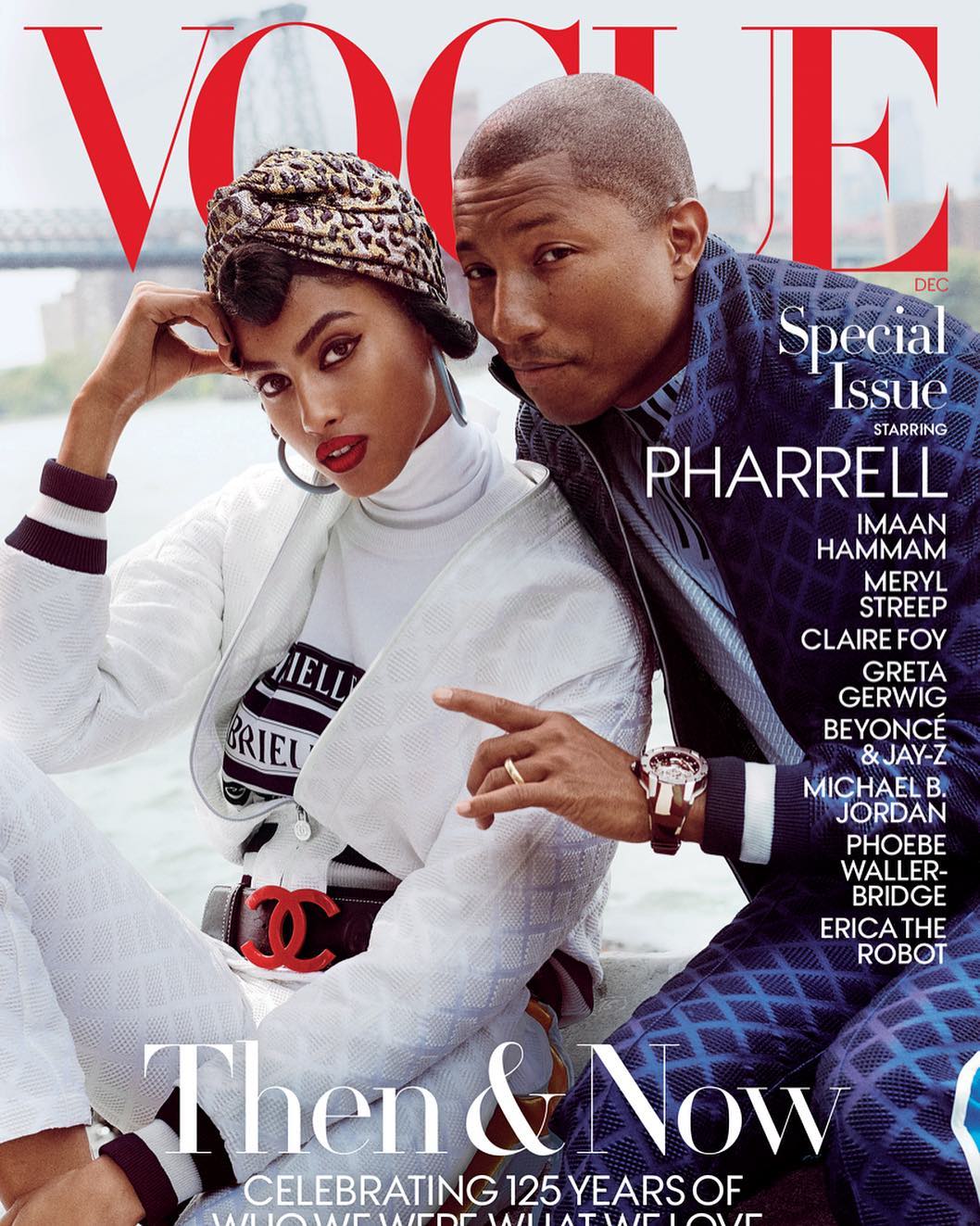 C’est aux côtés de Pharrell Williams que la sublime Imaan Hammam a pris la pose en Une de Vogue Us, à l’occasion des 125 ans du magazine.
